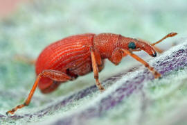 lassen sich die Mennigroten Ampfer-Spitzmausrüssler zu Boden