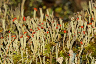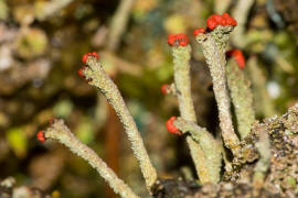 Familie: Cladoniaceae Fundort (Foto): Aufstieg zum Schliffkopf / Nationalpark Nordschwarzwald Datum (Foto): 21. November 2021 Gefährdung und Schutz: Nicht gefährdet; nicht geschützt. |