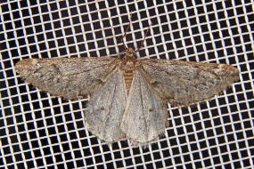 Hinterflügeln, Vorderflügel grau bis braun mit deutlich gezackter