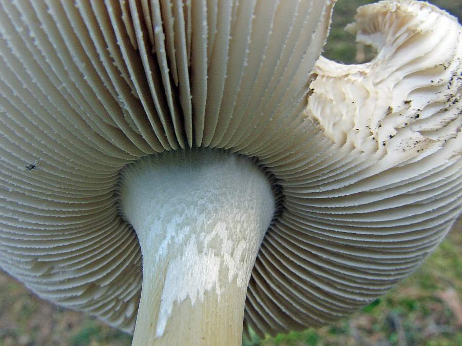 Stiel mit Ring, Lamellen nicht am Stiel angewachsen,
