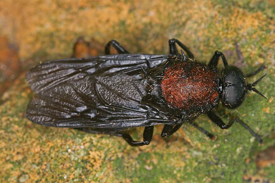 und in ihrer schwarz-roten Färbung elegante Waffenfliege ist in