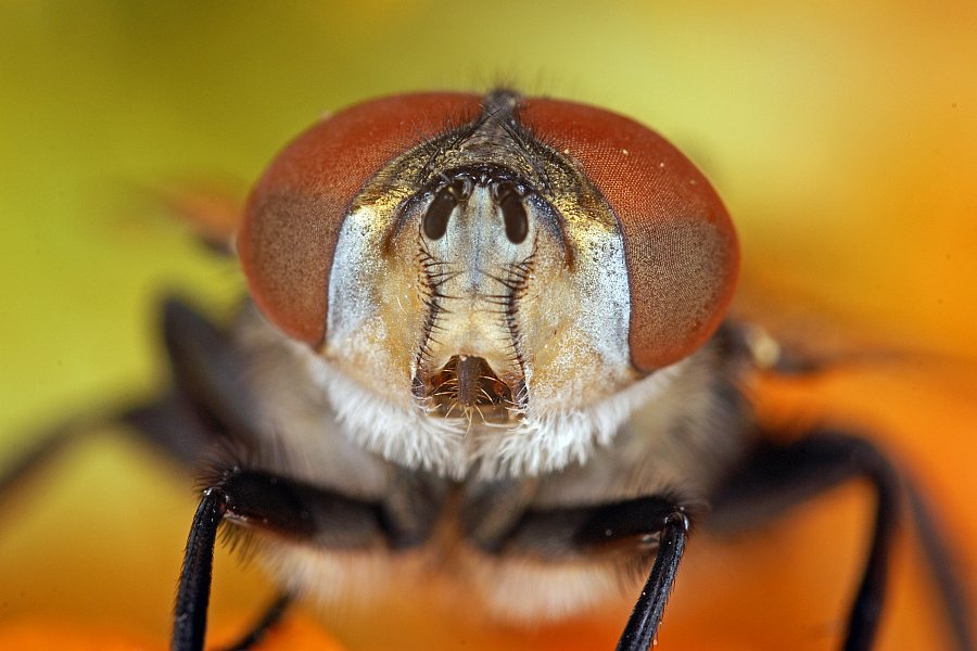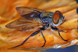 Thorax schwarz, seitlich grau bestäubt; Thorax oben goldgelb bestäubt,