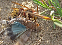 blauen Hinterflügel sind nur im Flug zu sehen - oder