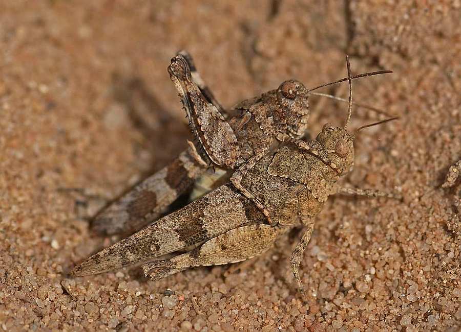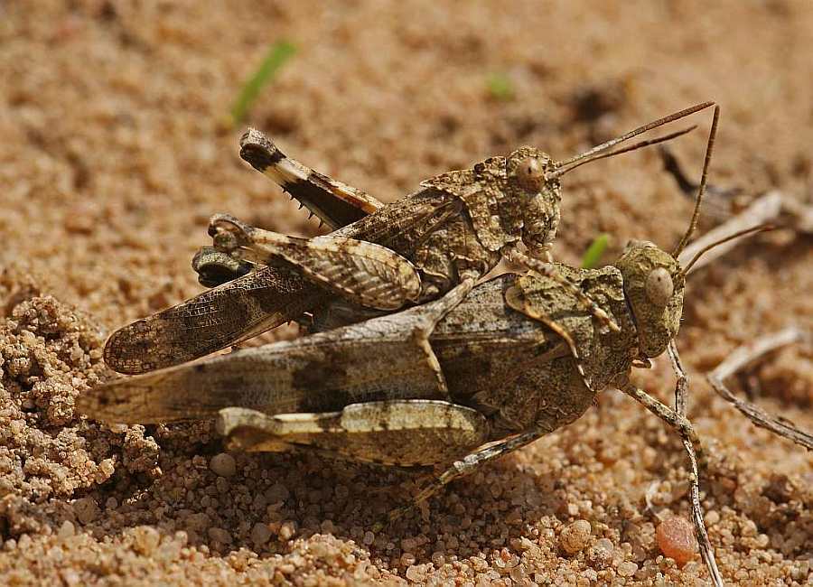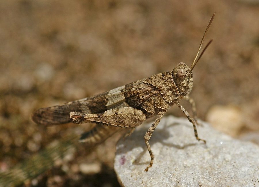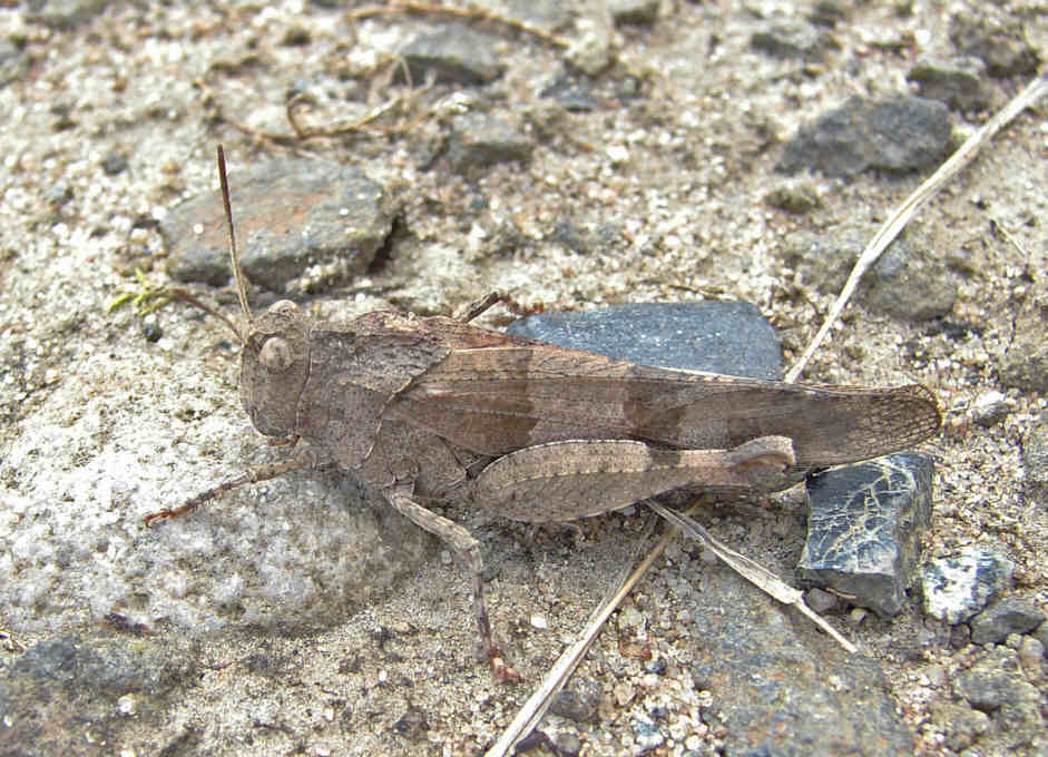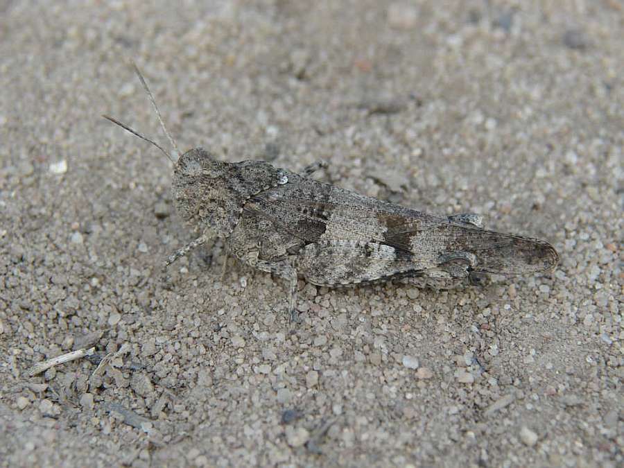 Die Blauflügelige Ödlandschrecke ist, wie ihr Name
