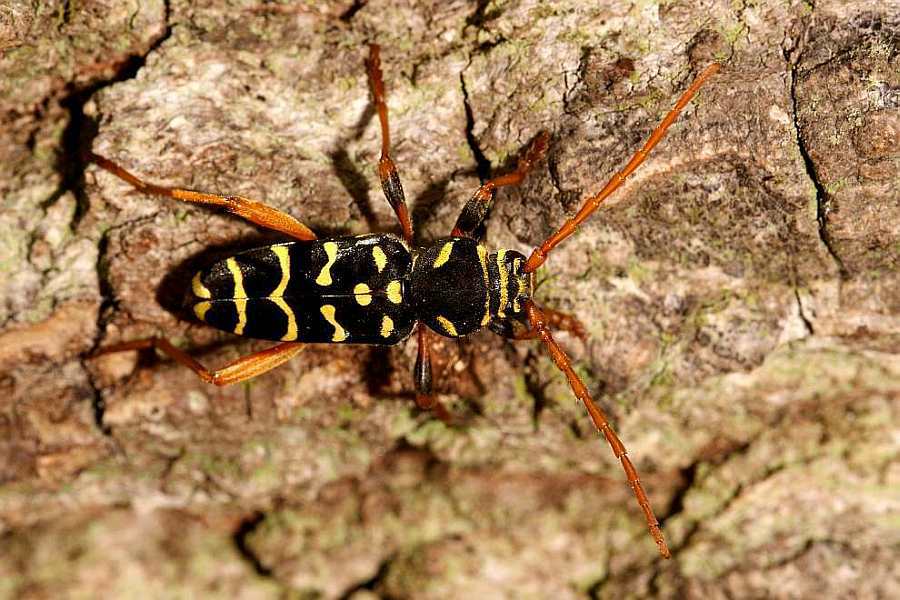 Plagionotus arcuatus ist bei sonnigwarmen Wetter oft sehr flugfreudig. Man findet