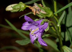 lang, blau bis blaulila, selten weiß, in