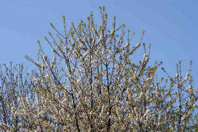 Wildform der Kulturkirsche; Früchte essbar (bittersüßer Geschmack) - am Besten als Gelee.