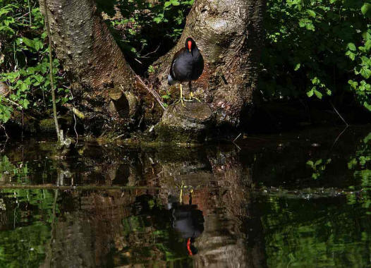 Teichhühner sind Bewohner schlammiger Uferzonen von